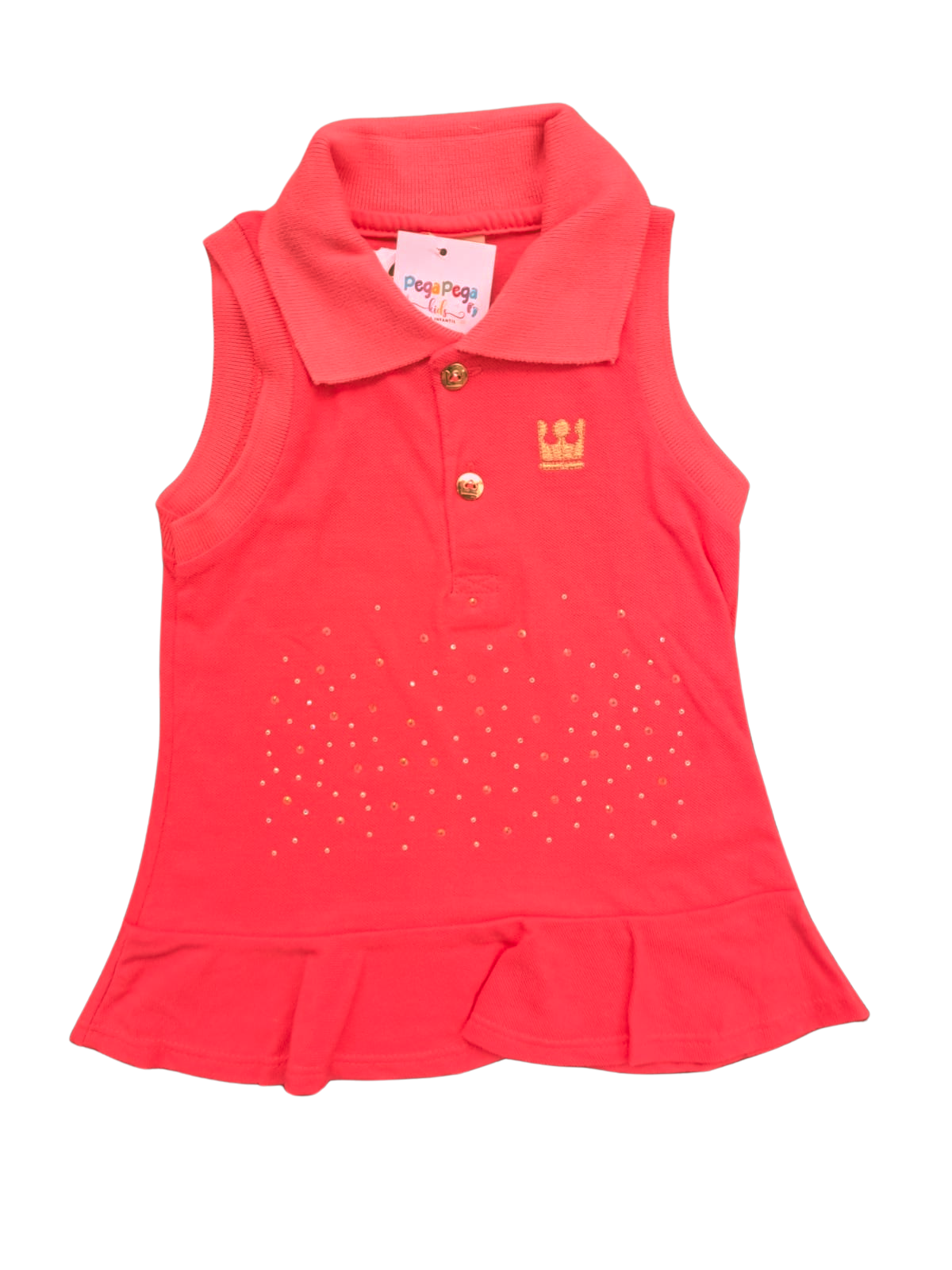 Delicada e cheia de charme, essa blusa polo sem mangas da marca Pega Pega é perfeita para as meninas que amam um visual estiloso e confortável. Com gola polo, botões dourados e aplicação de pedrarias na parte frontal, ela é ideal para ocasiões especiais ou para um passeio elegante.