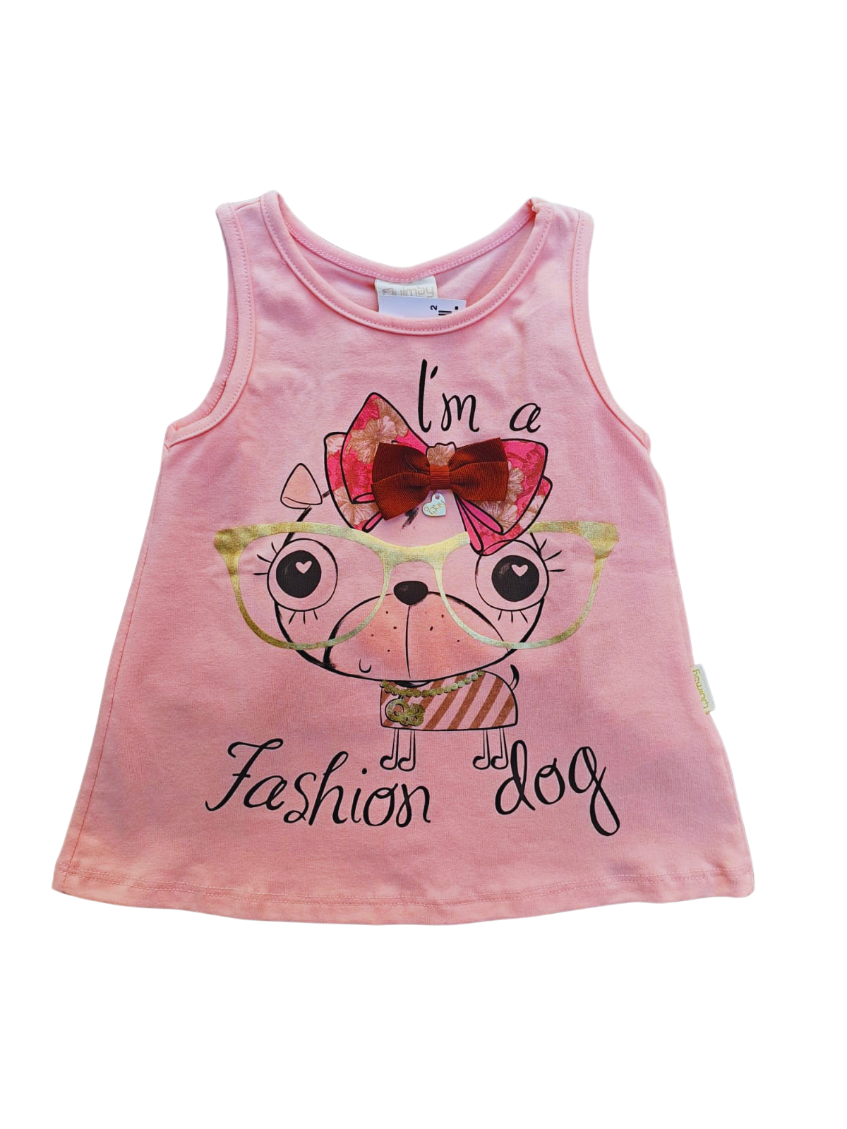 Encante-se com esta linda blusinha infantil rosa, ideal para as pequenas que adoram estilo e diversão! Com estampa fofa de cachorrinho usando óculos dourados e um laço estiloso, ele traz a frase divertida "I'm a fashion dog" que combina com a personalidade fashion das meninas. O detalhe em laço de tecido aplicado dá um charme especial à peça.