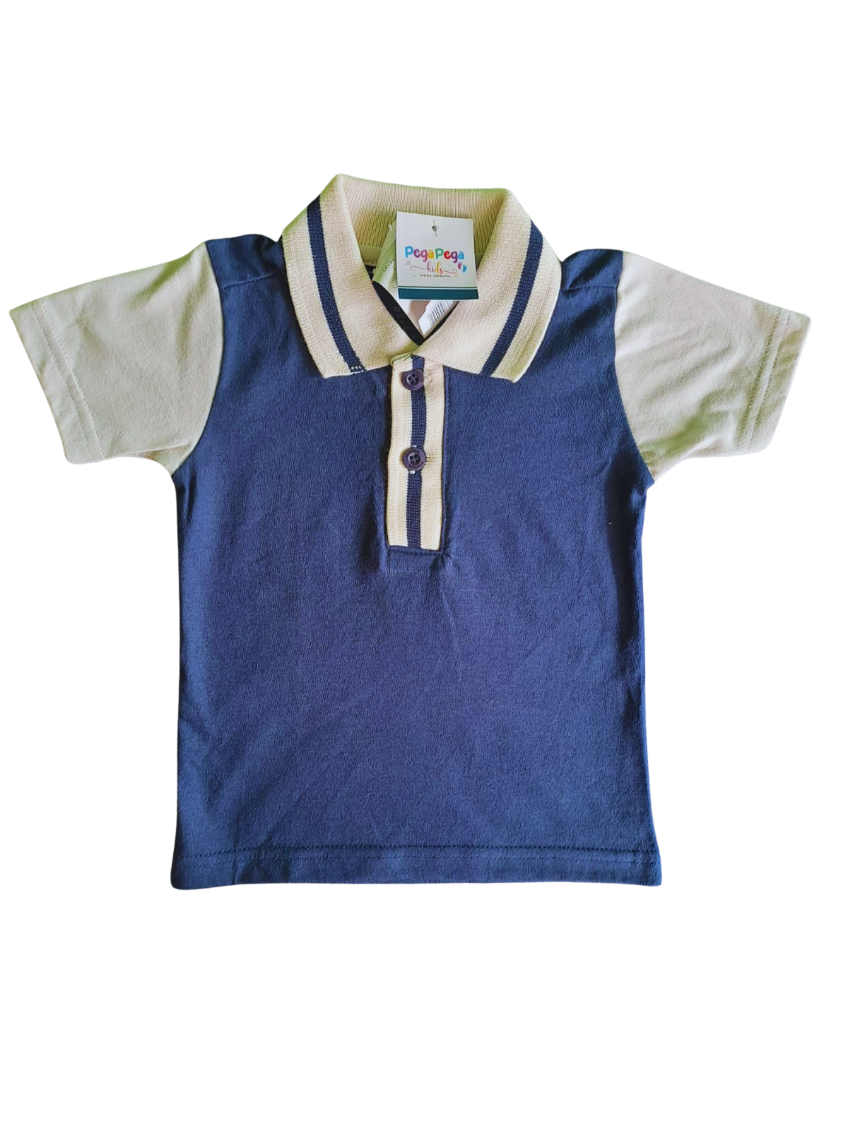 Estilo e conforto para os pequenos! Essa camisa polo infantil da Marisol combina elegância e praticidade em um só produto. Com corpo azul marinho e detalhes em bege nas mangas e gola, ela é perfeita para ocasiões casuais ou mais arrumadinhas. O tecido leve e macio proporciona conforto o dia todo, enquanto o design clássico com botões na gola garante um visual charmoso e atemporal.