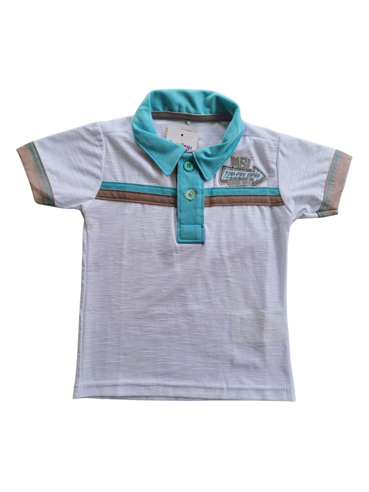 Essa camisa polo infantil é perfeita para ocasiões casuais ou especiais. Confeccionada em tecido leve e confortável, ela apresenta um design moderno com gola verde, listras em verde e bege, e fechamento por botões. O bordado no peito completa o visual com estilo discreto e sofisticado.