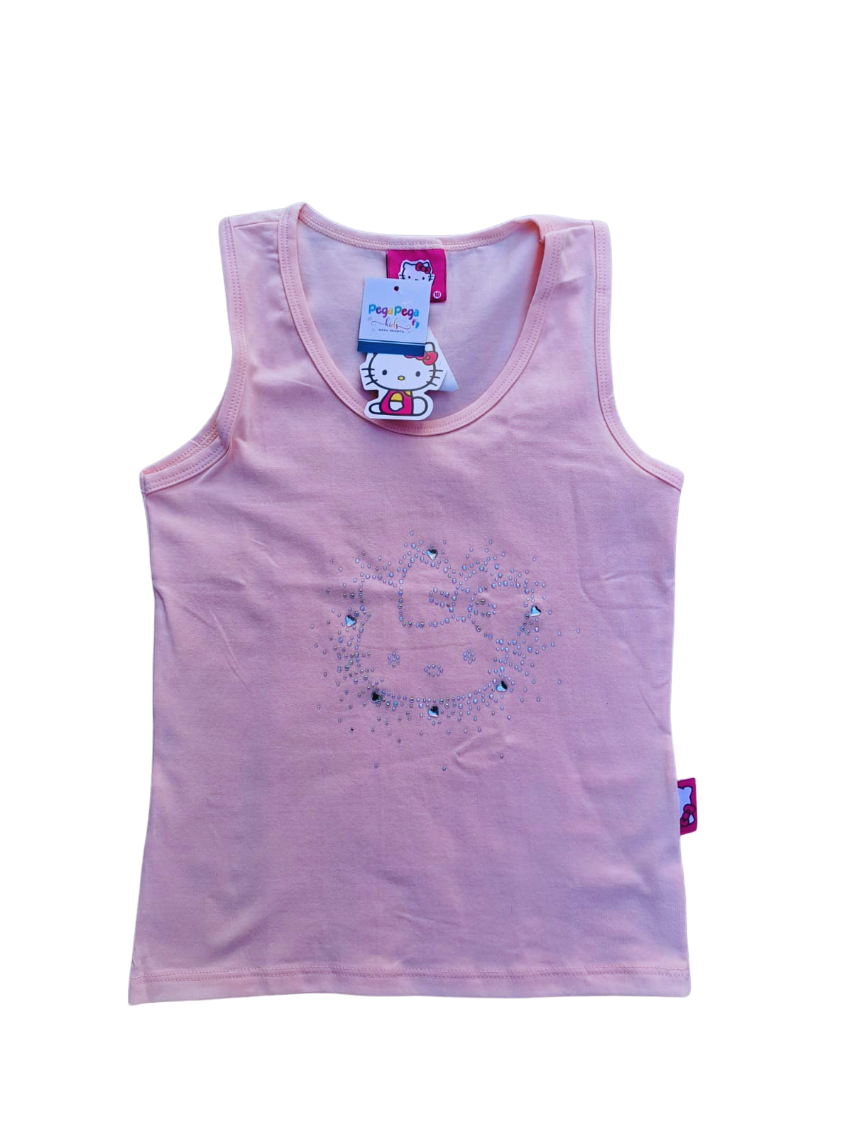 Para as fãs de Hello Kitty, essa camiseta rosa é um verdadeiro charme! Com uma delicada estampa da famosa personagem rodeada por cristais de strass, a peça traz brilho e elegância para o look das pequenas. Ideal para momentos de lazer ou passeios, ela combina o conforto do algodão com o toque encantador da Hello Kitty.