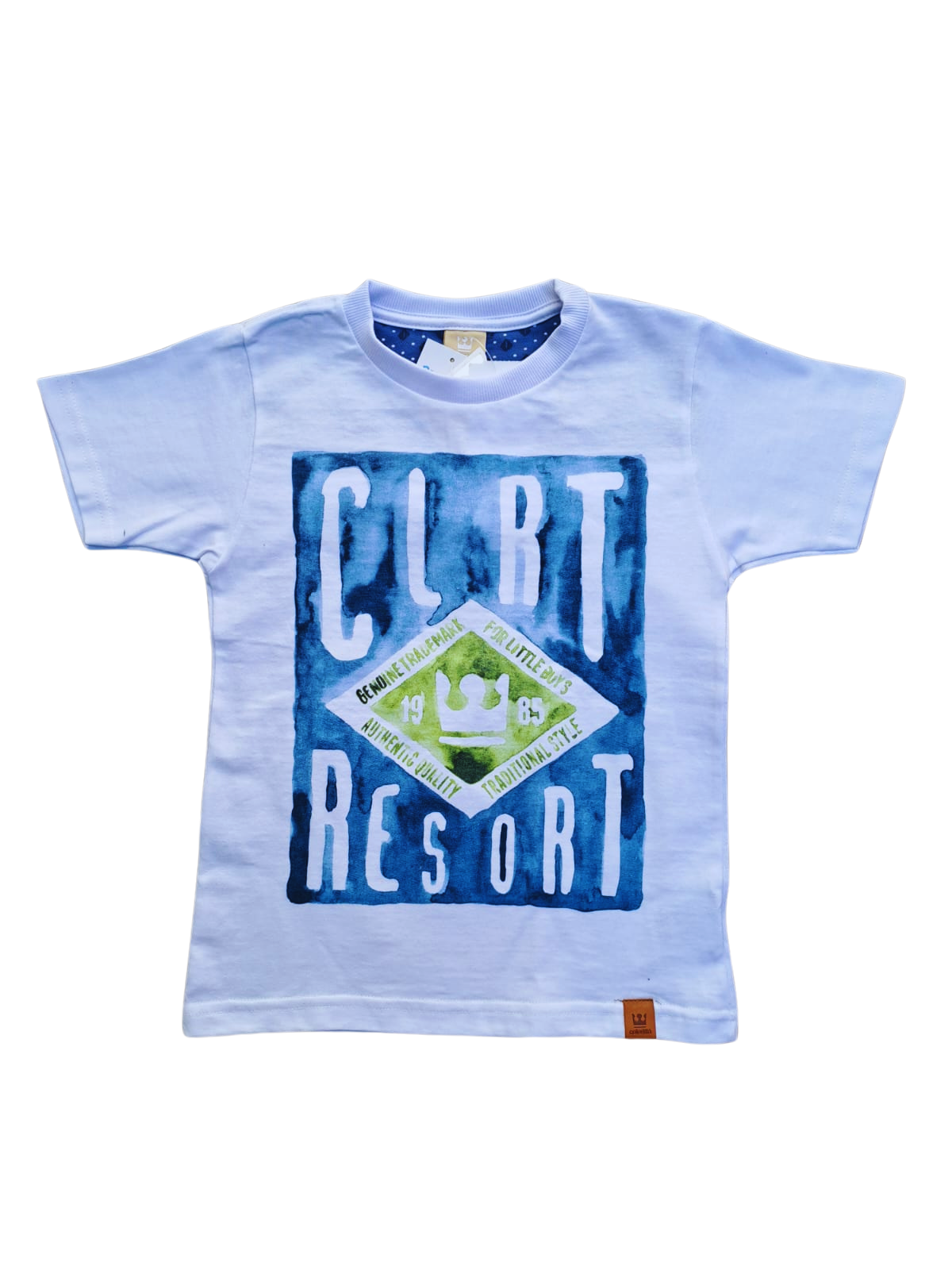 Deixe o visual dos pequenos ainda mais estiloso com essa camiseta cheia de personalidade! Confeccionada em tecido 100% algodão, ela oferece conforto e respirabilidade ideal para os dias mais quentes. A estampa moderna em aquarela traz os destaques para um brasão central, conferindo um toque descontraído e aventureiro ao look.