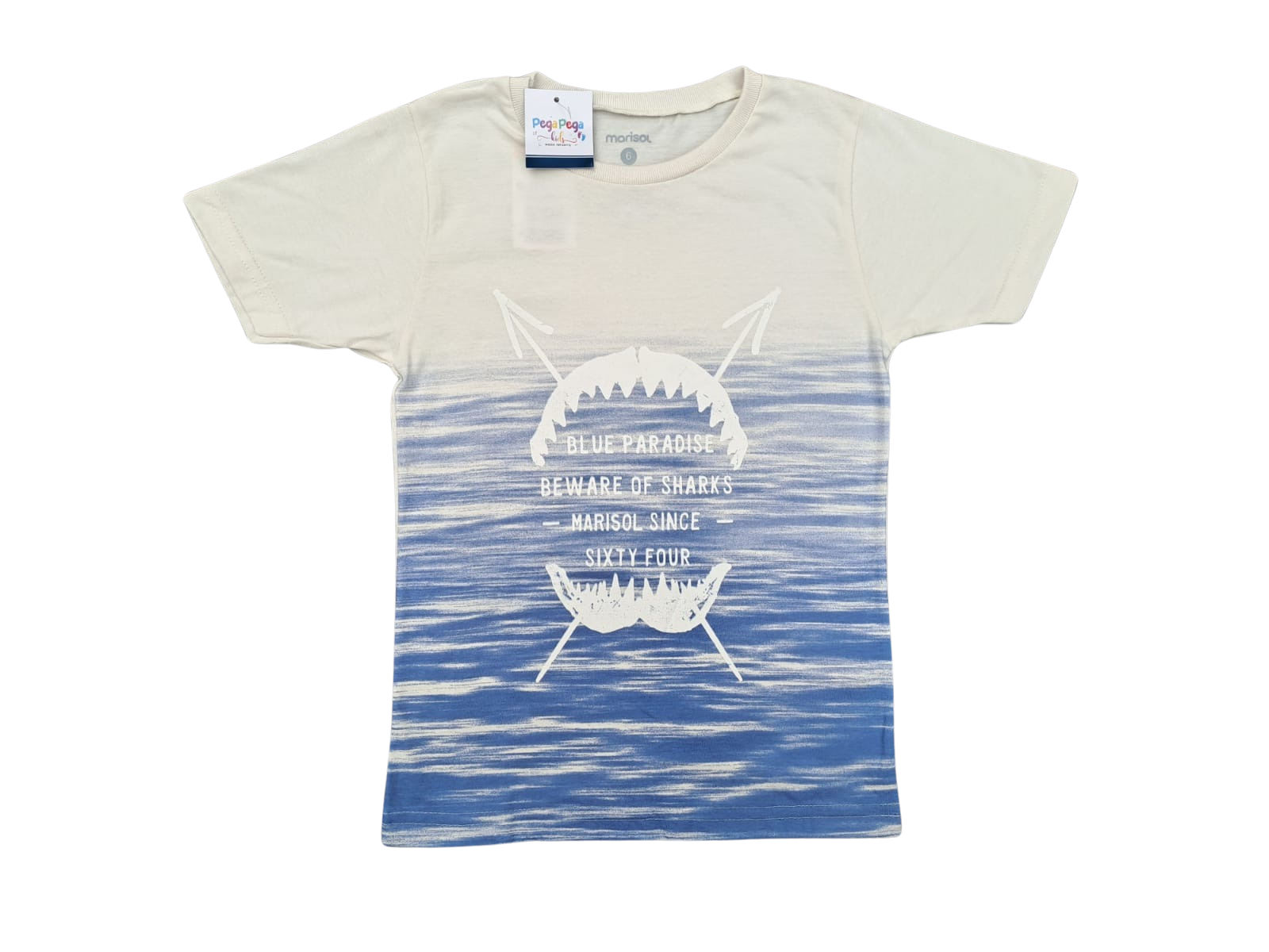 Para os pequenos aventureiros que adoram o mar! Esta camiseta da Marisol traz uma estampa estilosa com tema de tubarão e efeito degradê que remete às ondas do oceano. Confortável e cheia de personalidade, é perfeita para os dias de verão.
