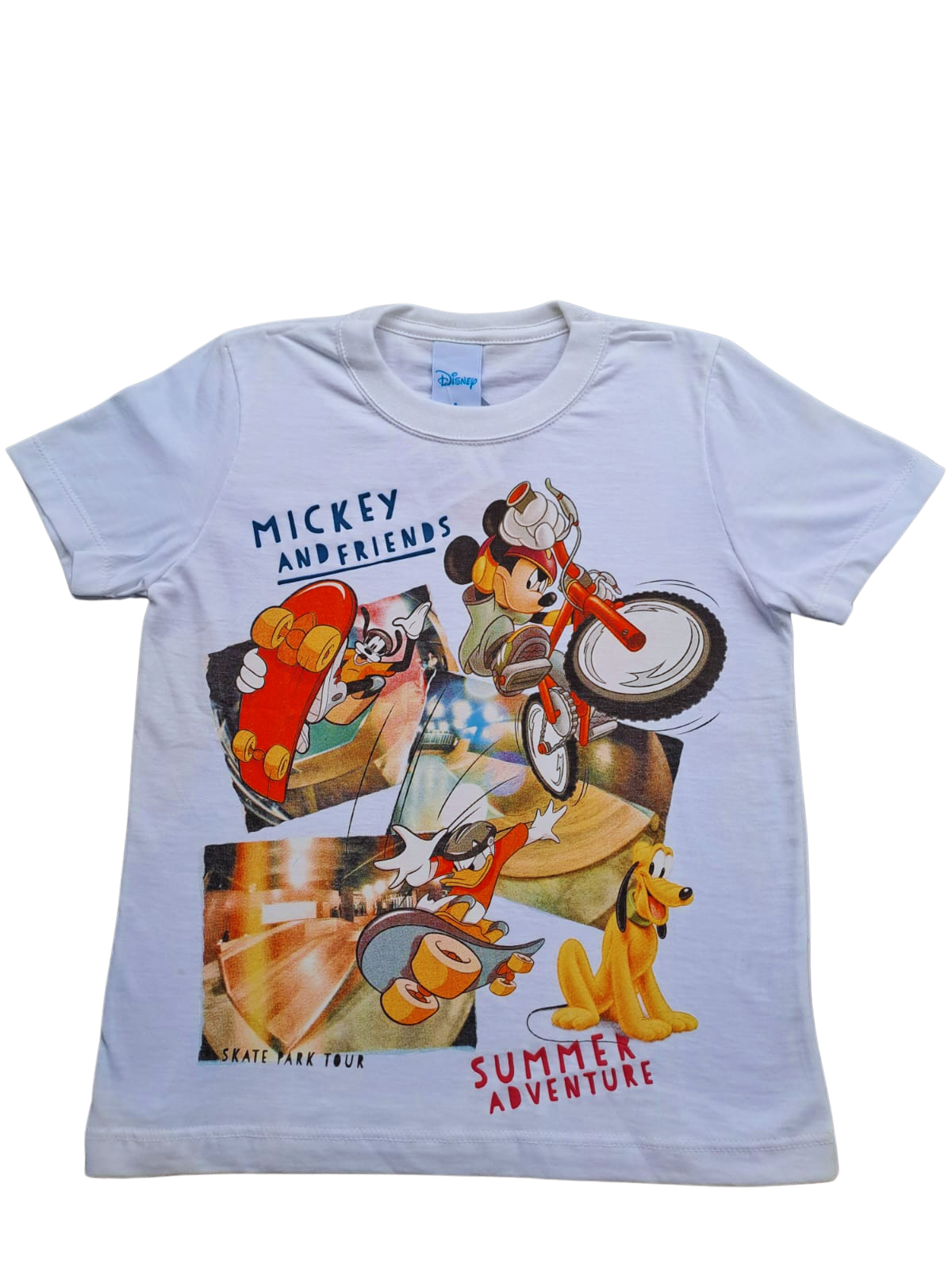 A camiseta infantil “Mickey and Friends – Summer Adventure” é perfeita para os pequenos que adoram aventuras e personagens clássicos da Disney. Com uma estampa vibrante e cheia de movimento, ela traz Mickey, Pateta, Pluto e seus amigos em uma divertida tour de skate e bicicleta!