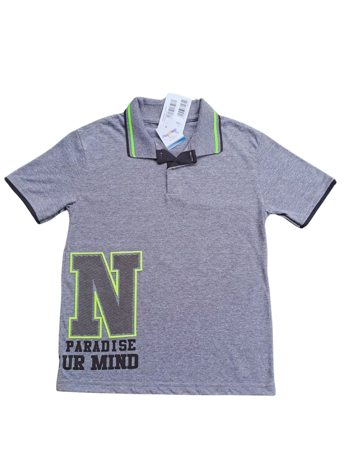 Camiseta Polo Infantil Masculina Cinza – Estampa KYLY