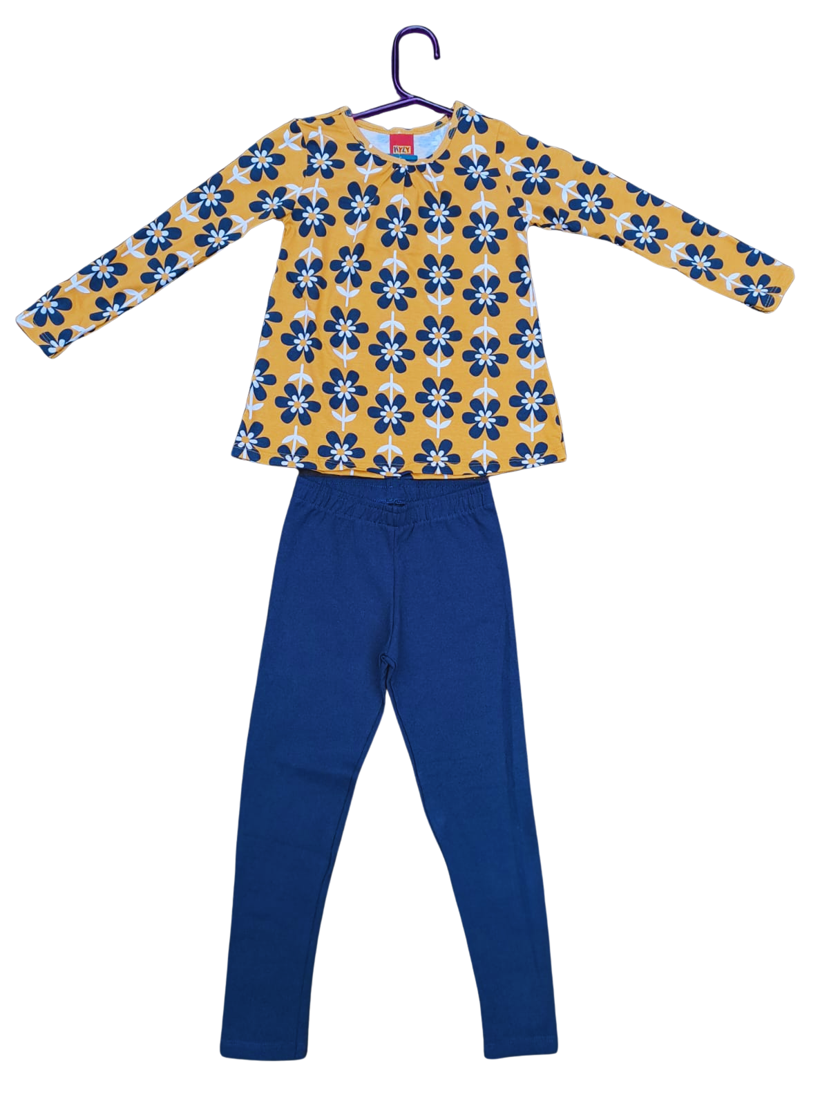 A blusa de manga longa apresenta uma estampa floral vibrante em tons de amarelo e azul, trazendo um toque divertido e moderno ao visual. Confeccionada em tecido macio, garante conforto durante as brincadeiras e passeios.