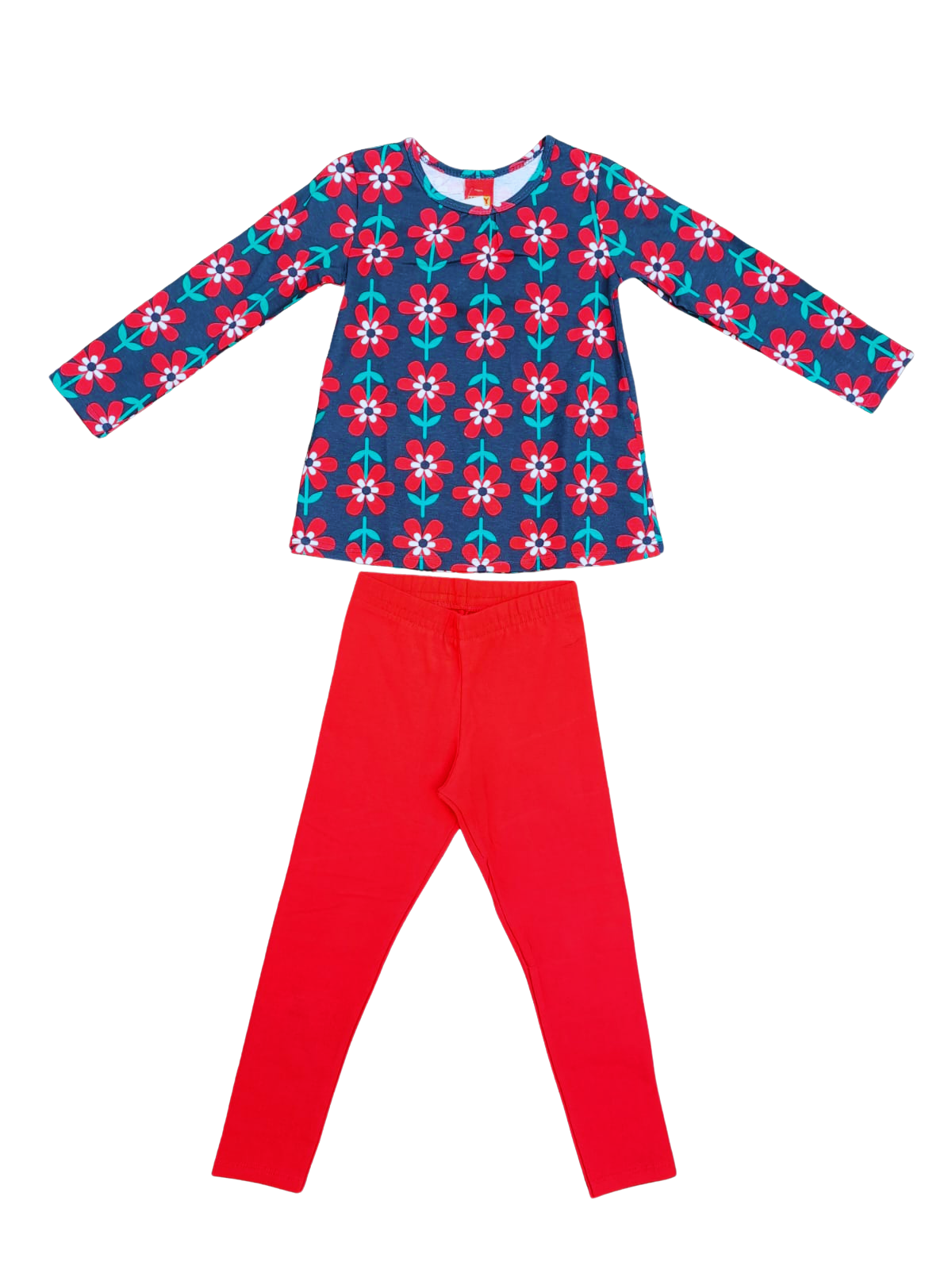 • Legging vermelha em tecido macio e flexível, perfeita para proporcionar liberdade de movimento e conforto durante as brincadeiras