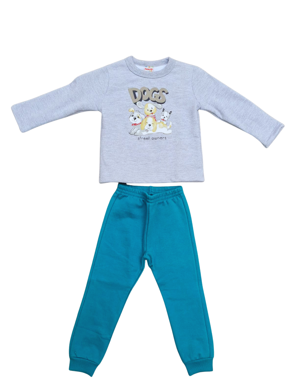 Conjunto Infantil Menino Manga Longa Cinza e Calça Azul