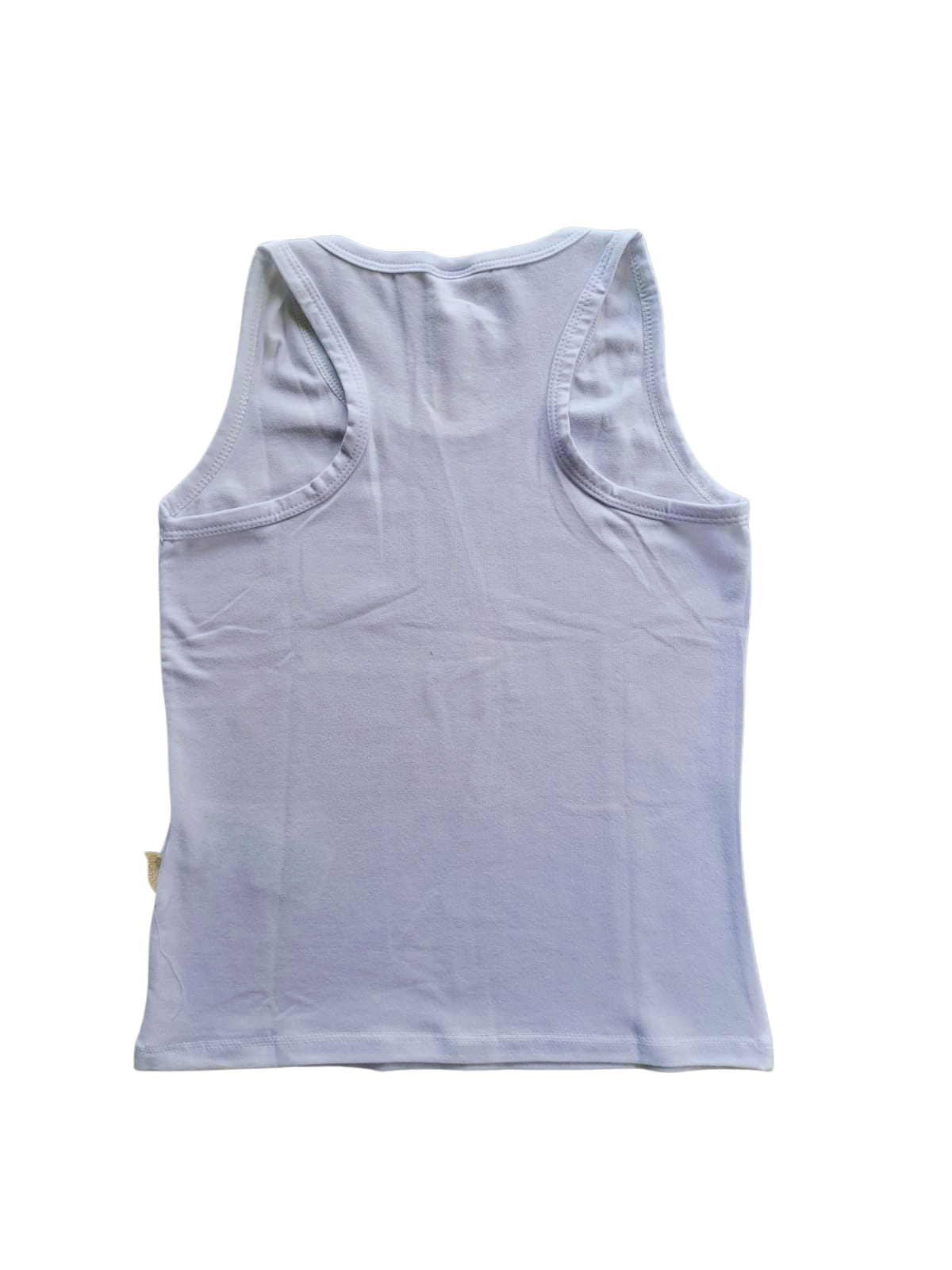 Ideal para dias quentes, essa regata é uma peça básica indispensável no guarda-roupa infantil.