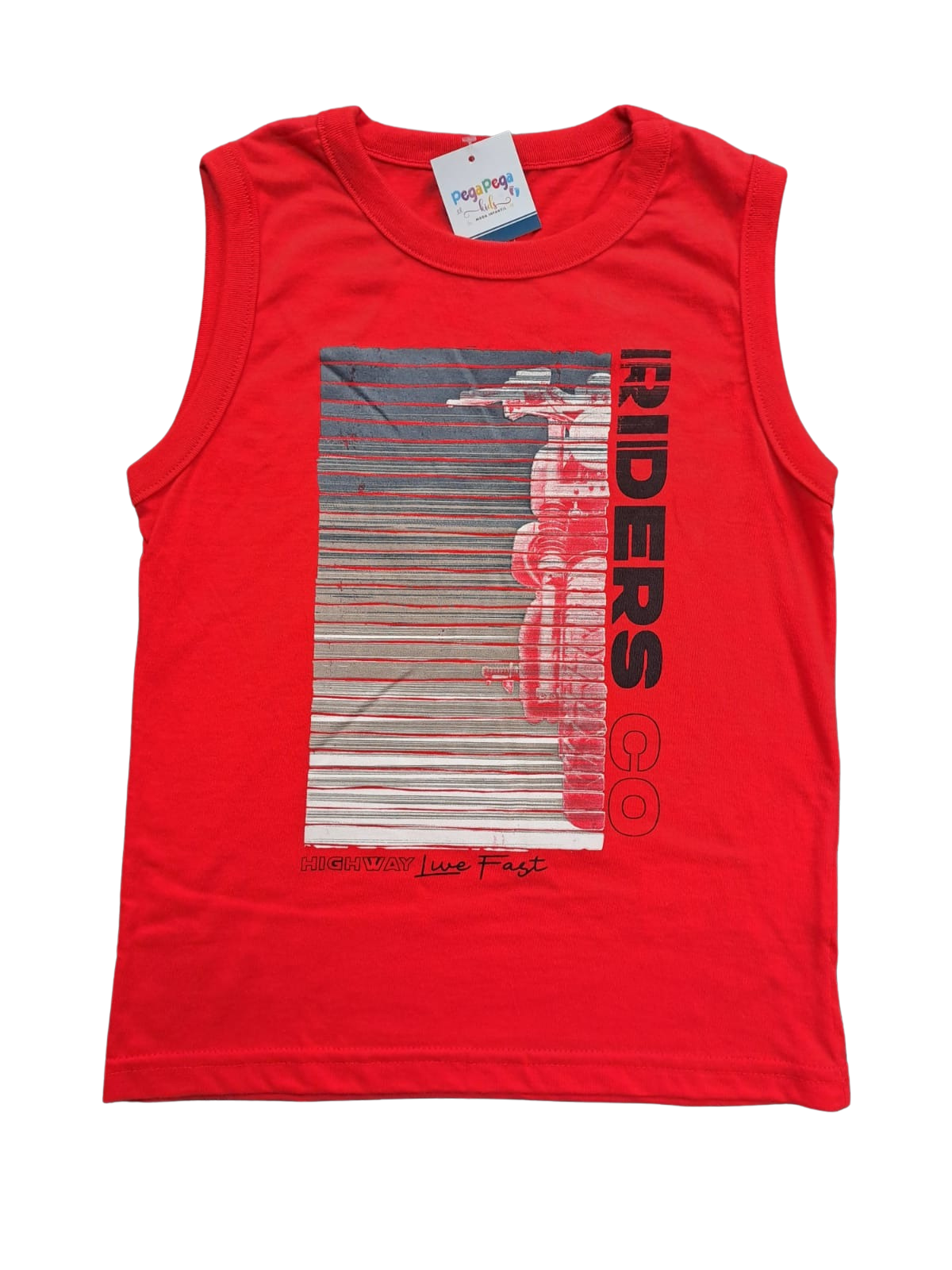 Cheia de atitude e estilo urbano, essa regata da Pega-Pega é ideal para os pequenos aventureiros! Com uma vibrante cor vermelha e estampa frontal estilizada de motocicleta, ela é perfeita para quem adora velocidade e liberdade.