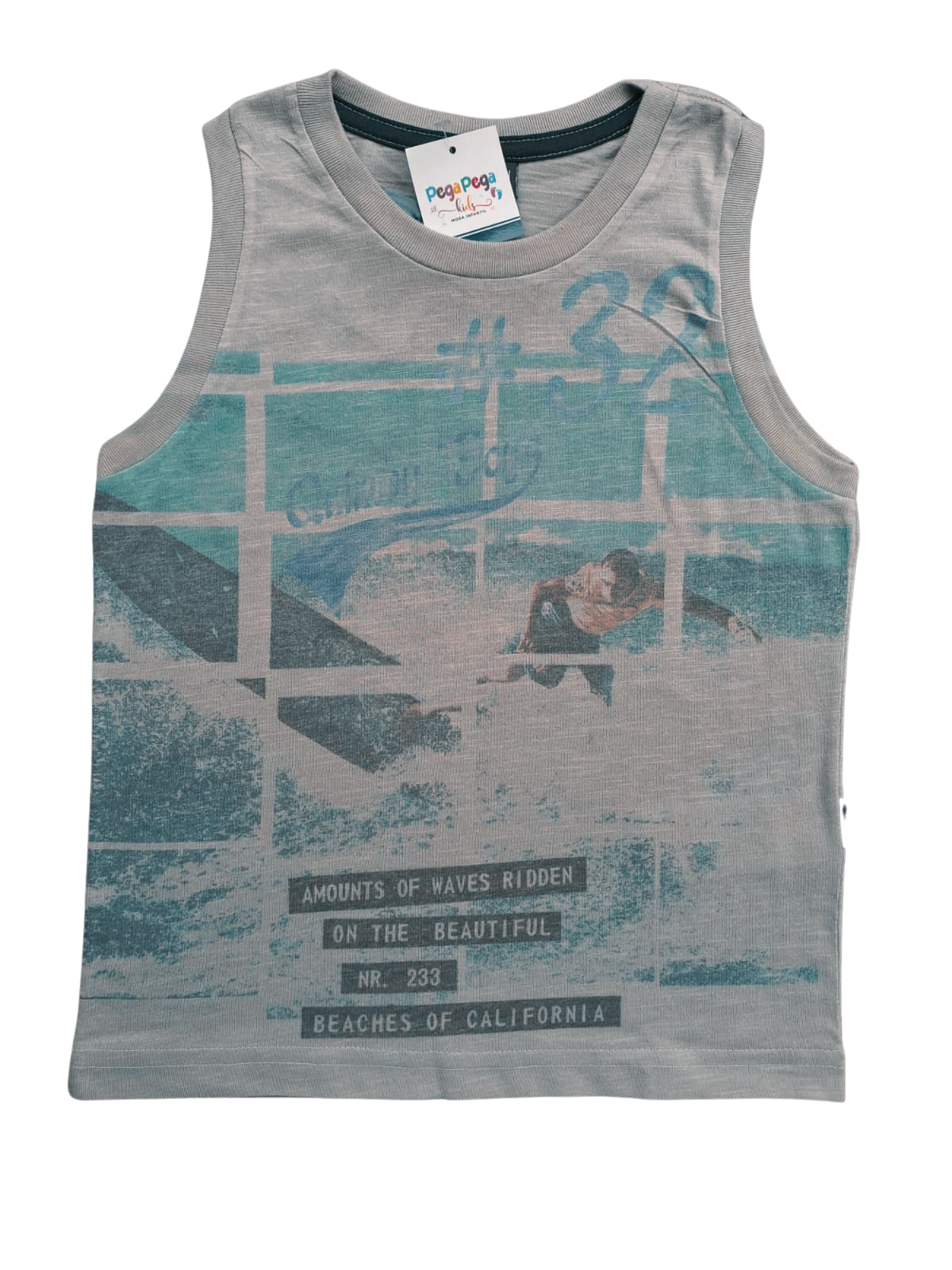 Entre no clima do verão com essa regata super estilosa! Com uma estampa inspirada nas praias da Califórnia e vibe surfista, ela é perfeita para os dias quentes e cheios de aventura. Leve, confortável e cheia de atitude, essa peça vai conquistar os pequenos.